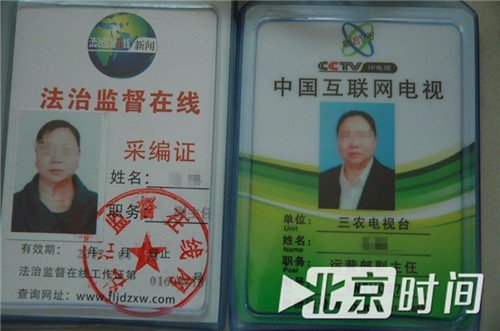 一個持有多個“媒體證件”。圖/李英強(qiáng) 嫌犯多為親友關(guān)系 史興平,37歲,小學(xué)文化,無業(yè),阜城縣漫河鄉(xiāng)楊小莊村人。 如果不是被抓,史興平不知還要在村里要耀武揚(yáng)威多久。 漫河鄉(xiāng)以種植蔬菜瓜果聞名,兩年前,史興平還扛著鋤頭去西瓜地里除草,不知什么時候,村里人就聽說他成了記者,至于是電視臺還是報紙的記者,并沒人能說清。 7月6日,史興平穿著藍(lán)色囚服、坐在審訊椅上敘說著敲詐企業(yè)過程的畫面被央視曝光,至此,村民才知他是個假記者。 村民稱,史興平不務(wù)正業(yè),原本有個持家的好妻子,兩年前離婚走了,留下10余歲兒子跟著奶奶一起生活。 史興平近兩年一直在外漂著很少回村,一次喝酒后回村,借著酒勁要進(jìn)村委會喊廣播,被制止后罵罵咧咧的離去。村民們當(dāng)時就懷疑,就這素質(zhì)不知怎么當(dāng)上的記者,遲早會出事。 “小平很少回家,究竟在外干啥也從不對我說,只是偶爾回來給我二三百的生活費。”史興平年邁的母親告訴北京時間“暴風(fēng)眼”(微信號:btime007)。 面對警察的訊問,史興平透露,自己的“轉(zhuǎn)型”是從結(jié)識賈瑞開始的。 賈瑞和馬林為該團(tuán)伙的主要成員,兩人從事媒體工作達(dá)10余年之久,自稱“資深媒體人”。 馬林供述,之前曾在媒體做過發(fā)行工作,對新聞媒體有一定了解,也積累下許多媒體和社會人脈關(guān)系,對外一直自稱記者,時間久了大家誤以為她就是真記者,有時就連自己都深信不疑。 因長期在本地作案,與較多企業(yè)負(fù)責(zé)人形成相對熟絡(luò)關(guān)系,不便親自出面,于是,兩人轉(zhuǎn)而指使成員作案。 史興平在和賈瑞學(xué)習(xí)“采訪業(yè)務(wù)”后另立門戶,通過中國新聞播報社名義,四處網(wǎng)羅人員建起了自己的隊伍。 負(fù)責(zé)該案件的警官張偉濤向北京時間“暴風(fēng)眼”介紹,該團(tuán)伙由三個小團(tuán)伙組成,小團(tuán)伙成員相對固定,多以相熟程度、親緣關(guān)系結(jié)伙,文化程度普通不高。 第一小團(tuán)伙史興平、趙桂風(fēng)、張強(qiáng)、申名、杜東、孫友等11人組成;第二小團(tuán)伙馬林、宋軍等5人組成;第三小團(tuán)伙賈瑞、王強(qiáng)等人組成。 其中馬林、宋軍是一對“母子兵”;團(tuán)伙成員史興平、張強(qiáng)、孫友、申名、杜東、賈瑞曾有搶劫、盜竊等犯罪前科,孫友、杜東曾是獄友。 辦案警官張偉濤介紹,團(tuán)伙中成員文化水平普遍是小學(xué)或初中,僅有一名年齡最小、學(xué)歷最高的李光,大學(xué)畢業(yè)后因未找到合適就業(yè)單位,加入該團(tuán)伙。
