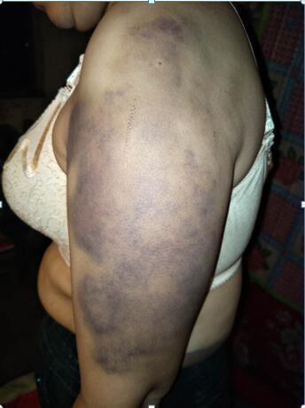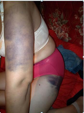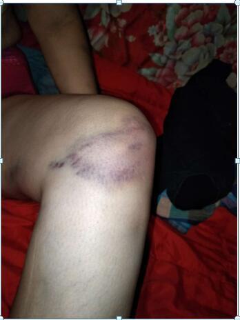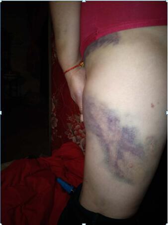 常x麗接著講述,“2013年程雪海出獄,我陪他去天津奔波創(chuàng)業(yè),他承接工程,年薪40萬(wàn)。他有錢了,怎么看我都不順眼,打罵已經(jīng)成了家常便飯。在這期間,他還帶回家一個(gè)女人,和她共同生活。程雪海把我的手機(jī)沒(méi)收,還把我囚禁起來(lái),像奴隸一樣的每天為他們洗衣做飯。有任何不順眼的,就拿著木棍對(duì)我進(jìn)行毆打。我求他說(shuō),你看在我們二十多年的夫妻情分上,別為了這個(gè)情婦打我。你要是覺得我沒(méi)用就分手,給我一條生路吧。”程雪海邊罵邊說(shuō),“打死你又沒(méi)有攝像頭,直接把你拖進(jìn)后備箱,扔進(jìn)大海里。”記者問(wèn)“他都是用木棍打你嗎?”常x麗搖搖頭說(shuō),“他拿到什么就用什么打,木棍、掃把棍,打折了就再拿新的。有次他把我打暈過(guò)去了,就說(shuō)我是裝的,就開始踹我、掐我、還拿煙頭燙我的腿。兩個(gè)晚上不讓我睡覺,鎖上門,一直對(duì)我施暴。他還經(jīng)常帶著那個(gè)女的出去玩,給她買金首飾,讓我去但不讓我露面,不去就會(huì)打我,還經(jīng)常讓我站在攝像頭下,不能動(dòng)。”