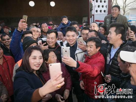 11月28日,劉強東與阜平縣平石頭村村民合影。 李秀芹攝