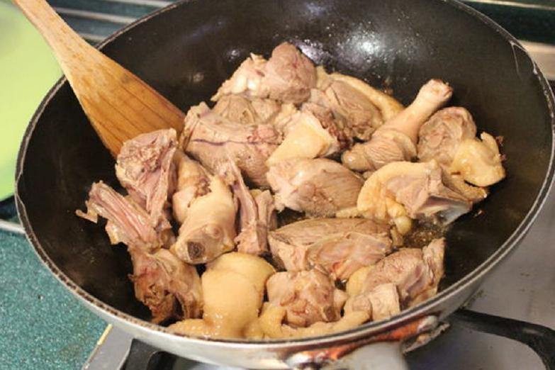 Step3.將鴨肉用麻油稍微炒過(guò)。